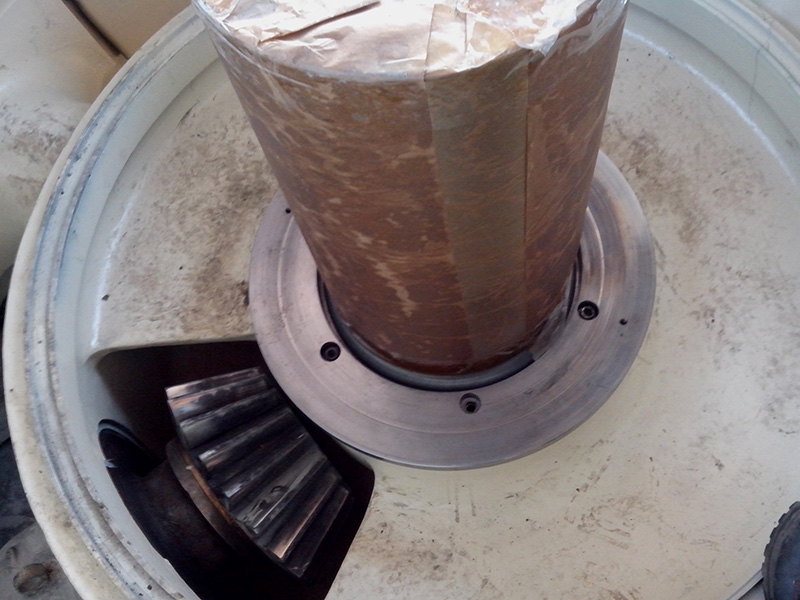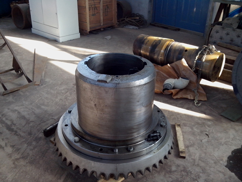 HP500 main shaft cracked during the machine running. We took the part repairing in our workshop. The bore hold were out of tolerance after our technician uninstalled the main shaft. We arranged repair welding and machining before installation.
